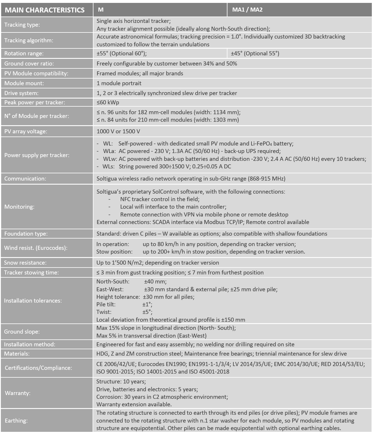 MA2: for advanced agrivoltaic applications, where the minimum height from the ground at maximum tilt ranges from 2 to 2.5 m (typically 2.1m);