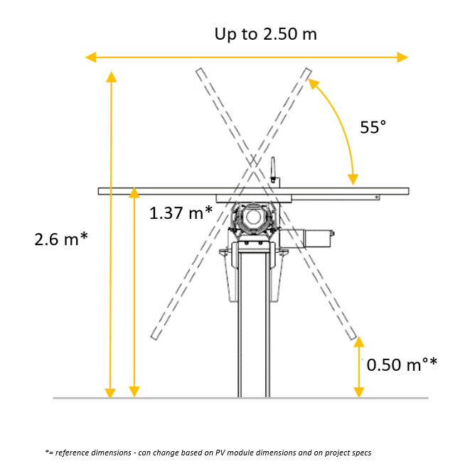 - Long & optimized tracker structure: up to 90 PV modules per tracker to optimize drive costs